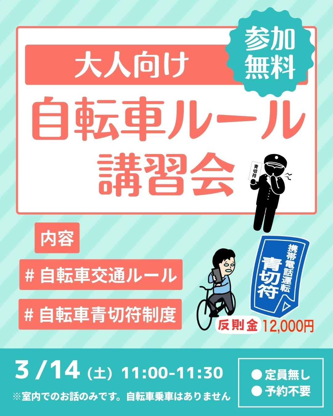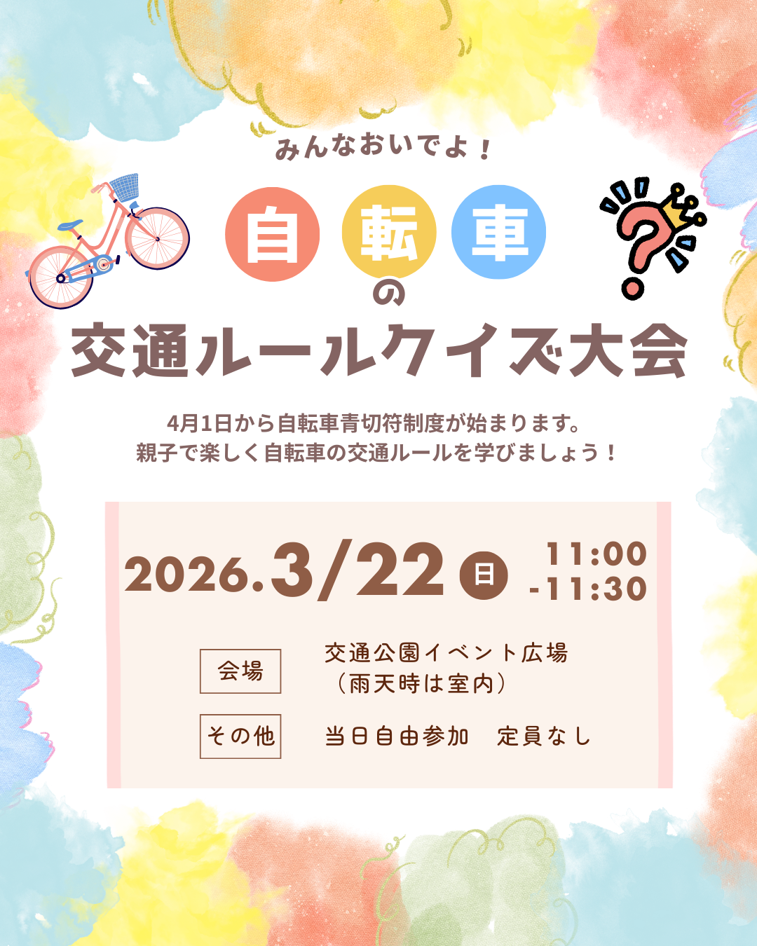 【イベント告知】自転車「青切符」導入目前!!大人も子供も交通公園で自転車ルールを楽しく学ぼう♪